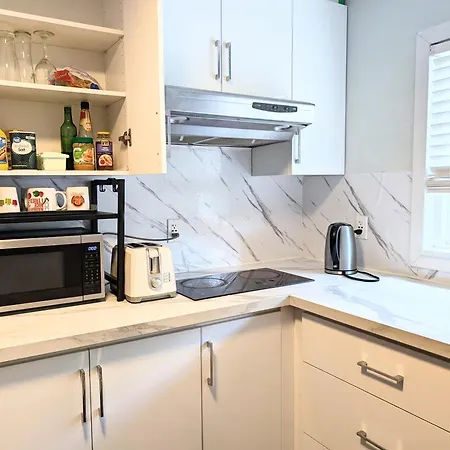 Hier steht auch eine Küchenzeile mit einem Wasserkocher, einem Kühlschrank und einem Toaster zur Verfügung. Das Restaurant Tropical Nights Restaurant & Lounge liegt einen 12-minütigen Spaziergang vom Apartment entfernt und serviert karibische Gerichte. Die Bushaltestelle 7249 Sheppard Avenue East liegt nur ein paar Minuten entfernt von diesem Apartment.